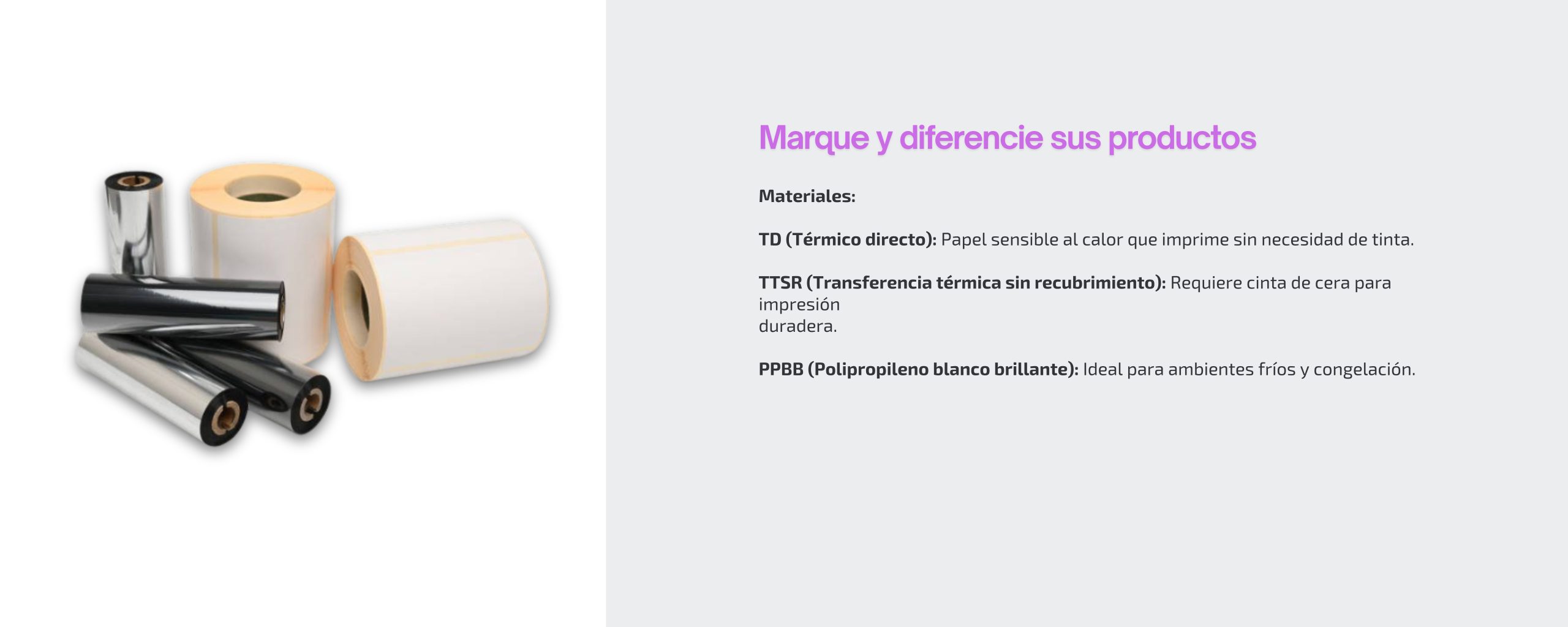 TTSR: Para etiquetas duraderas con impresión de cinta.
